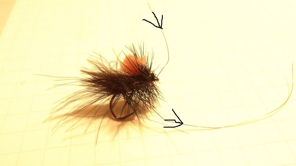 Toujours du haut de la mouche vers le bas pour des raisons de facilité et d’orientation de l’œillet.