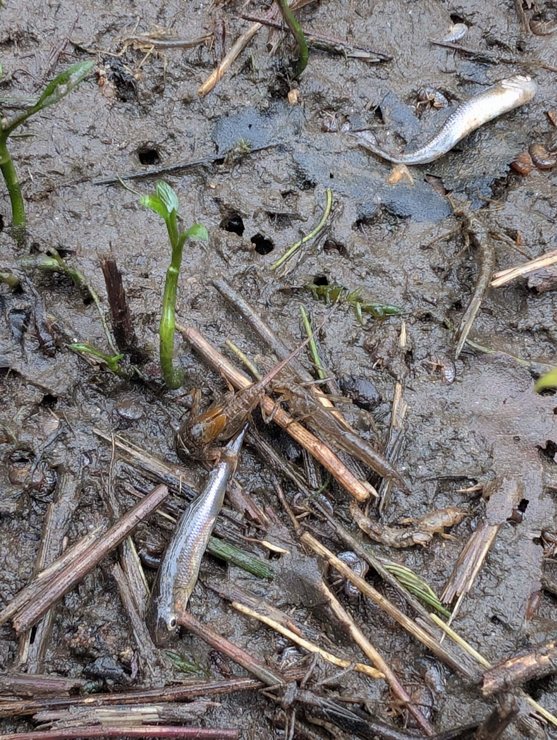 C’est la baisse des débits de ces derniers jours. On dirait des petits cyprinidés, peut être des chevesnes. Chez nous on ne voit pas encore de truitelles ou d’ombrets sur les bordures mais ça ne saurait tarder.