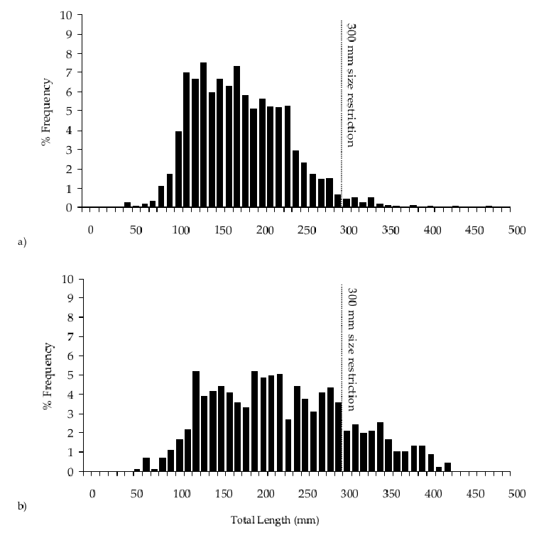 Tes graphiques montrent le contraire puisque dans le premier cas les sujets le plus gros sont prélevés, il y a donc bien un impact de la pêche de loisir sur la répartition de la population de truite par classe de taille même si l’impact sur le nombre global ou la biomasse est négligeable voir nul.