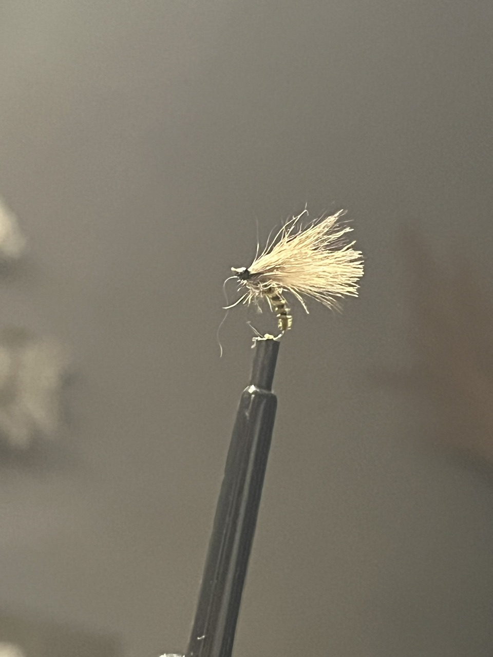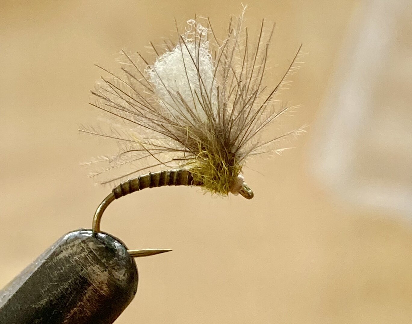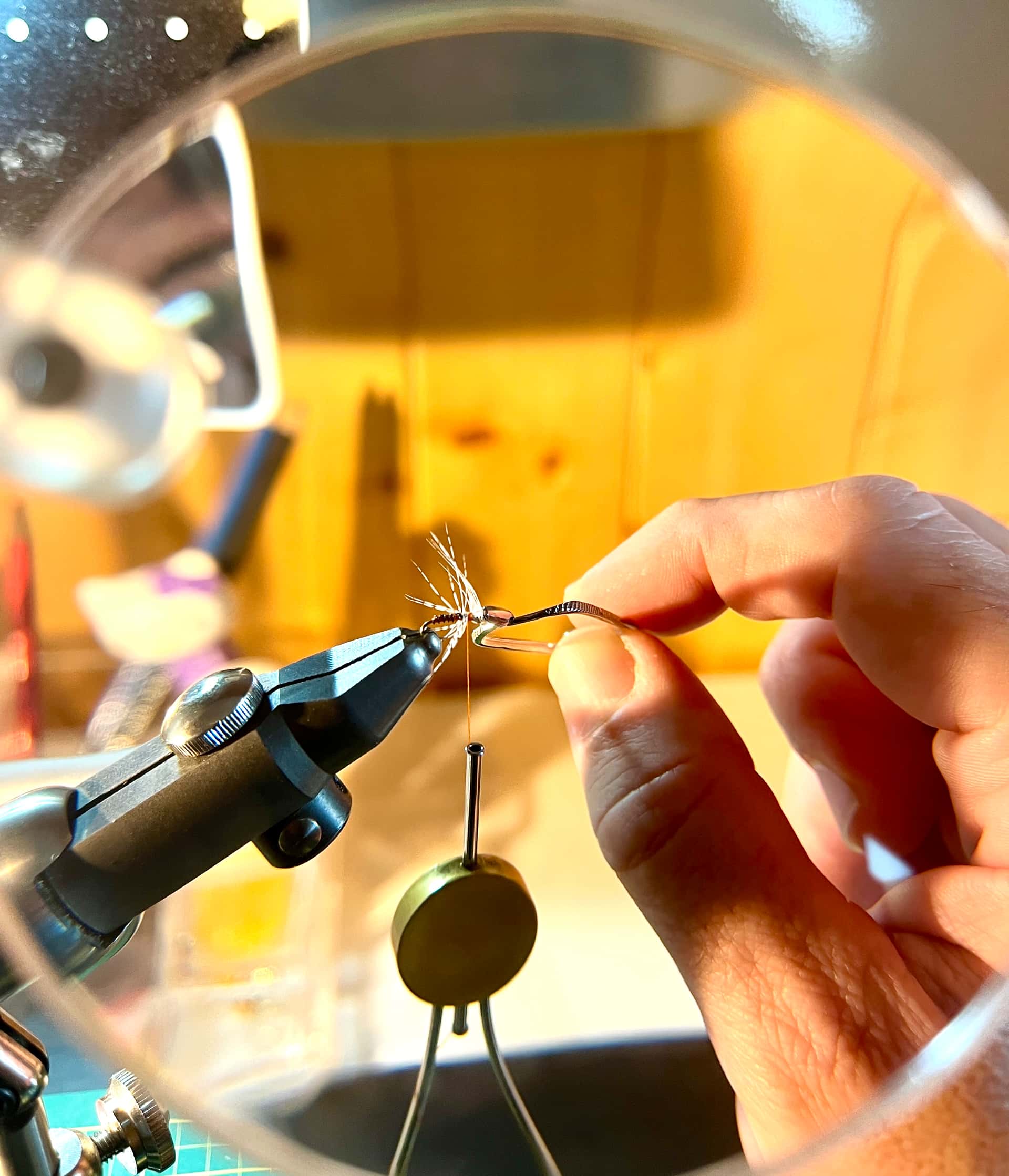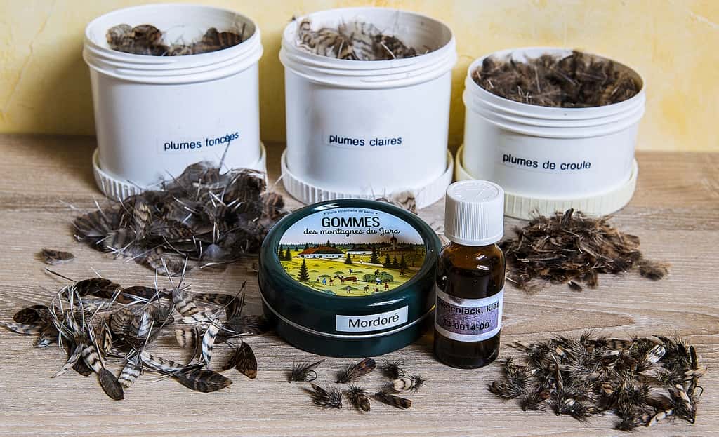 La magie quand tu tournes la pince à hackle et que les pointillés d’une simple demie-plume se répartissent autour de l’hameçon.