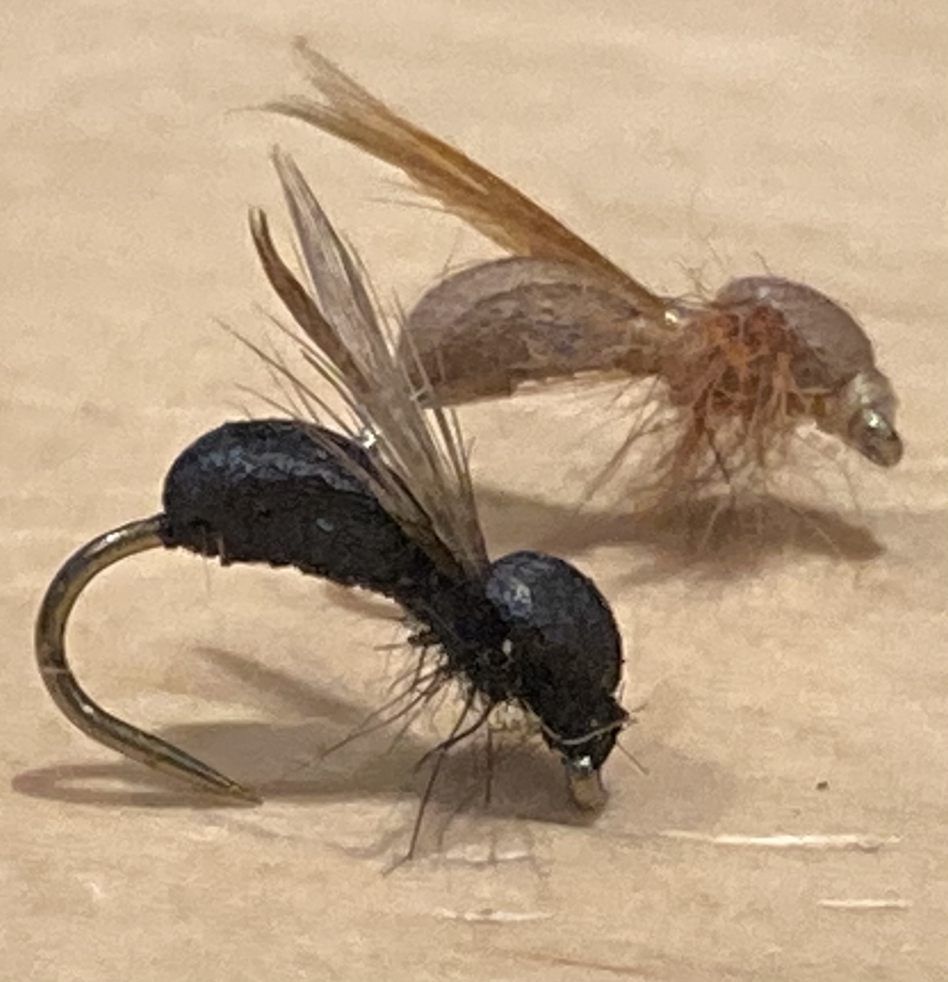 Oui des montages sympas et sûrement efficaces.. Ces mouches ont un aspect bourru qui fait penser aux pêcheurs du coin ![]()