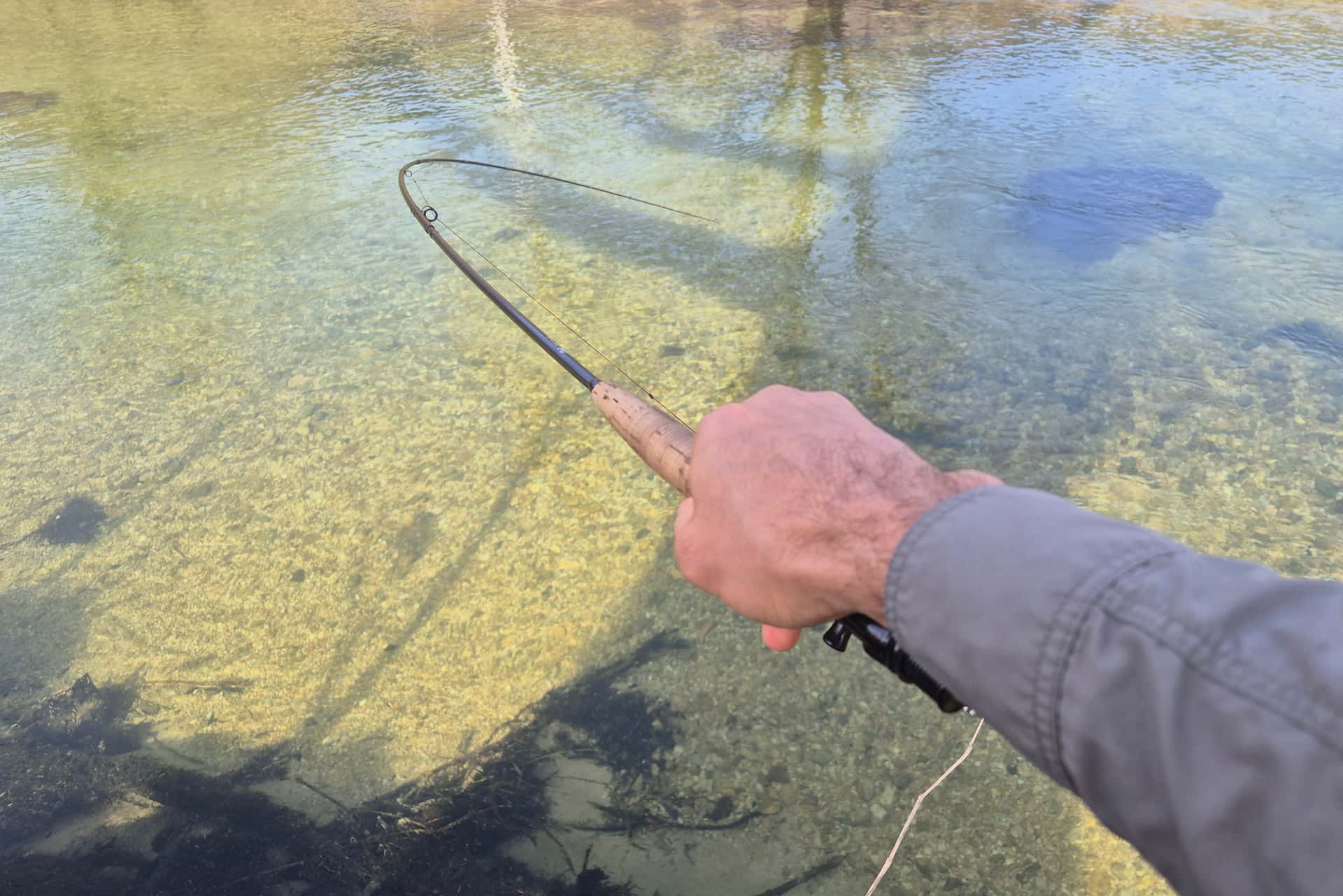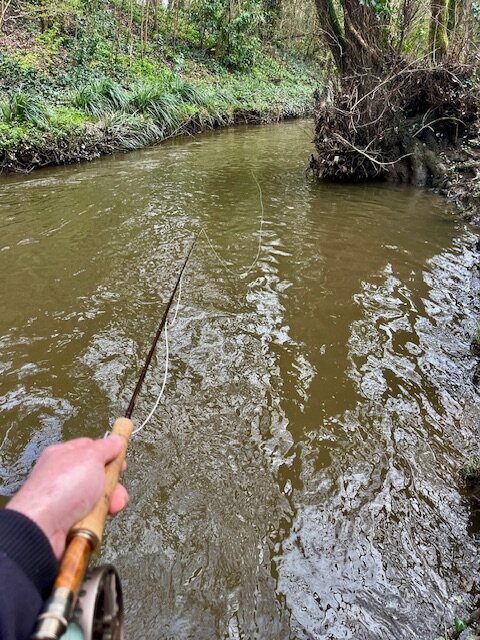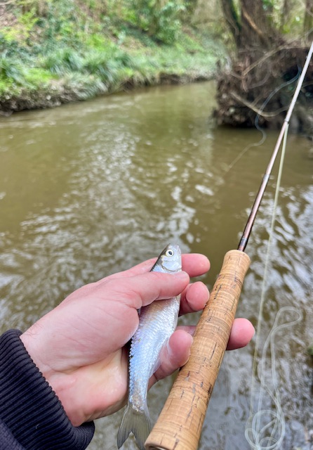 Première de l’année en nymphe à vue, tout contre la rive opposée.