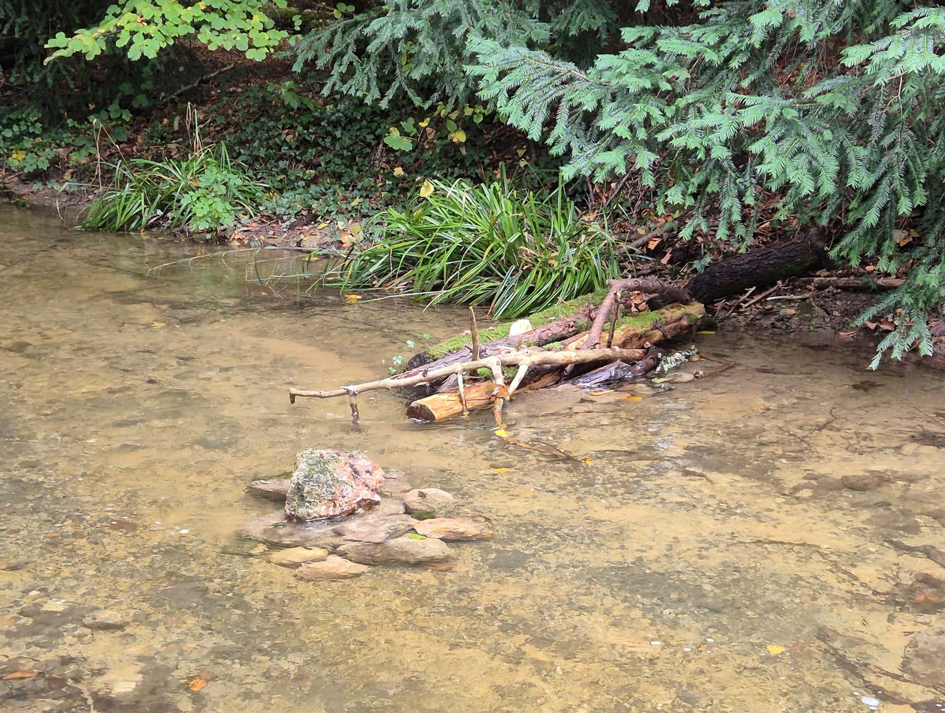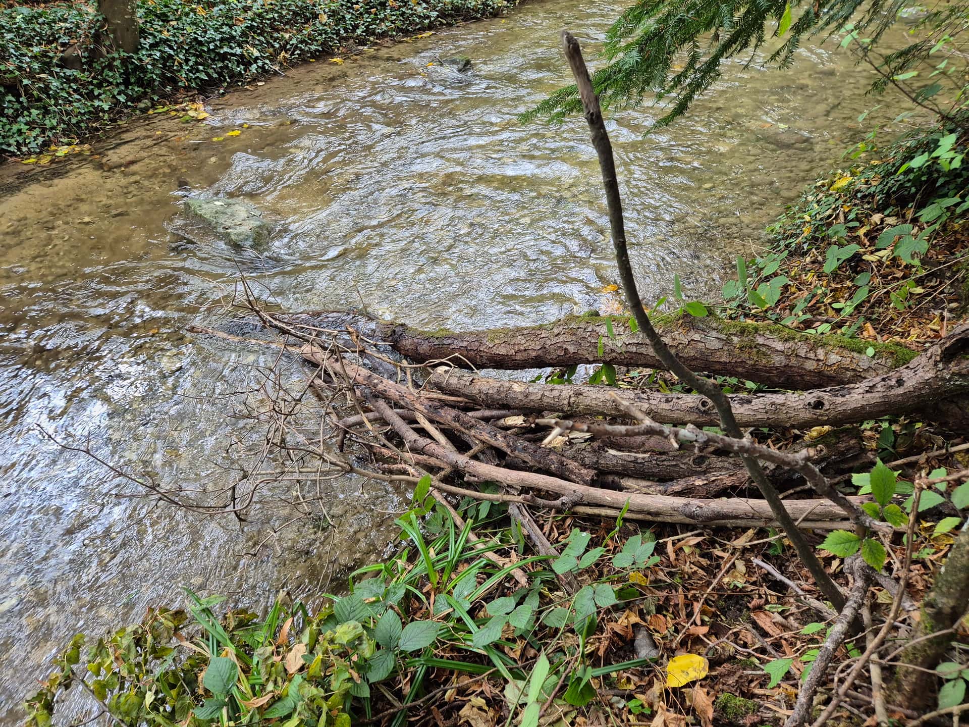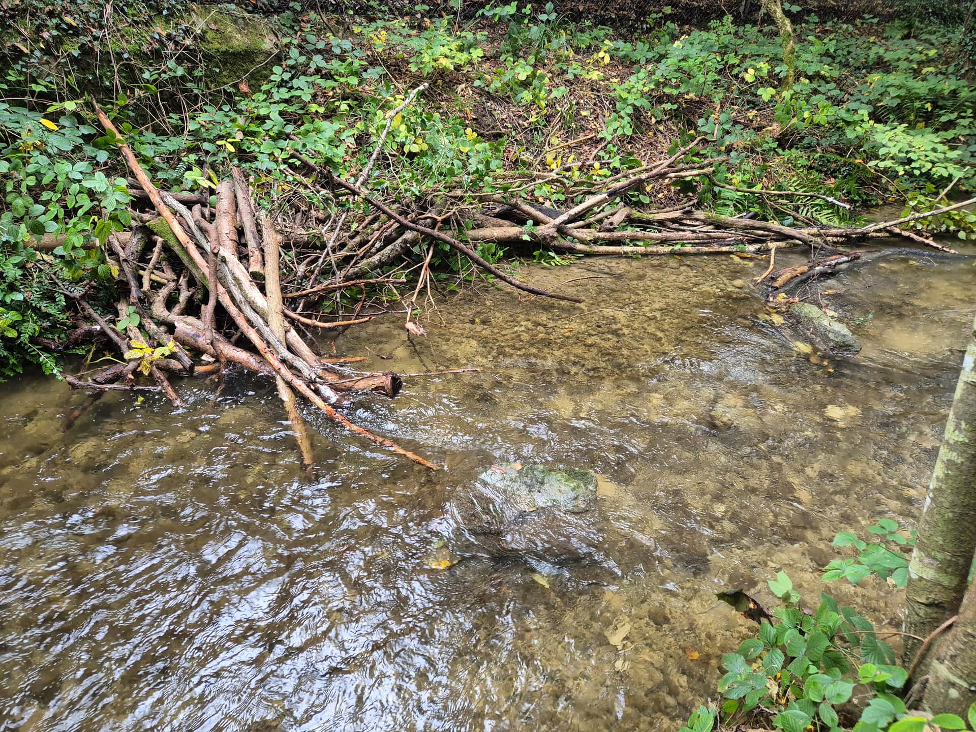 Comme déjà dit, il n’y a ici pas de risque qu’une crue “balaie tout” comme tu l’as écrit. C’est un tributaire au débit très modeste (même en période de crue), et la plupart des enrochements et embâcles présents depuis des années sans bouger ont ce gabarit, voire moins.