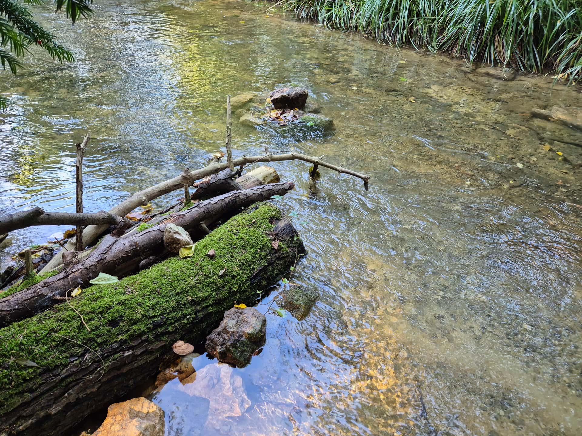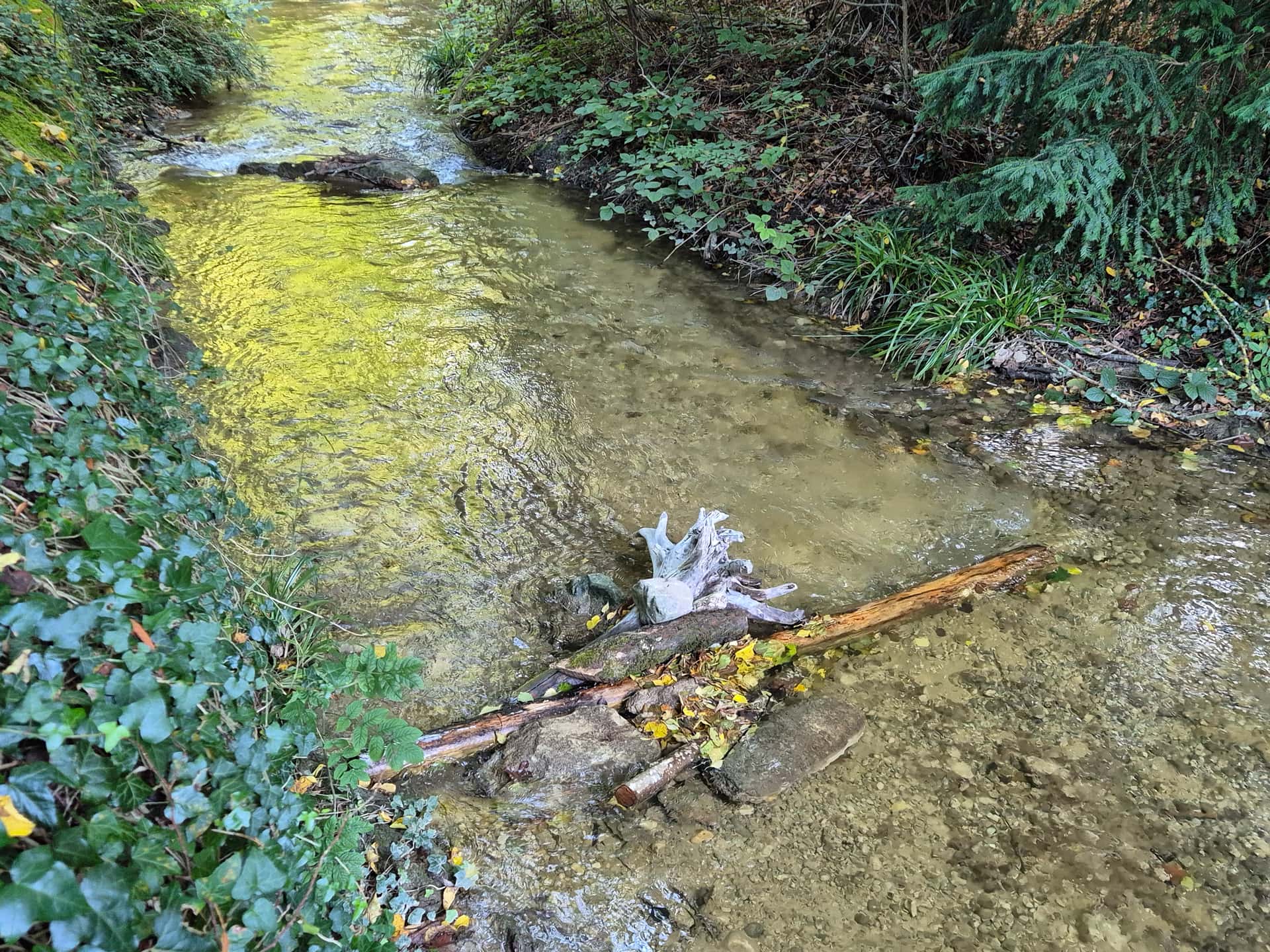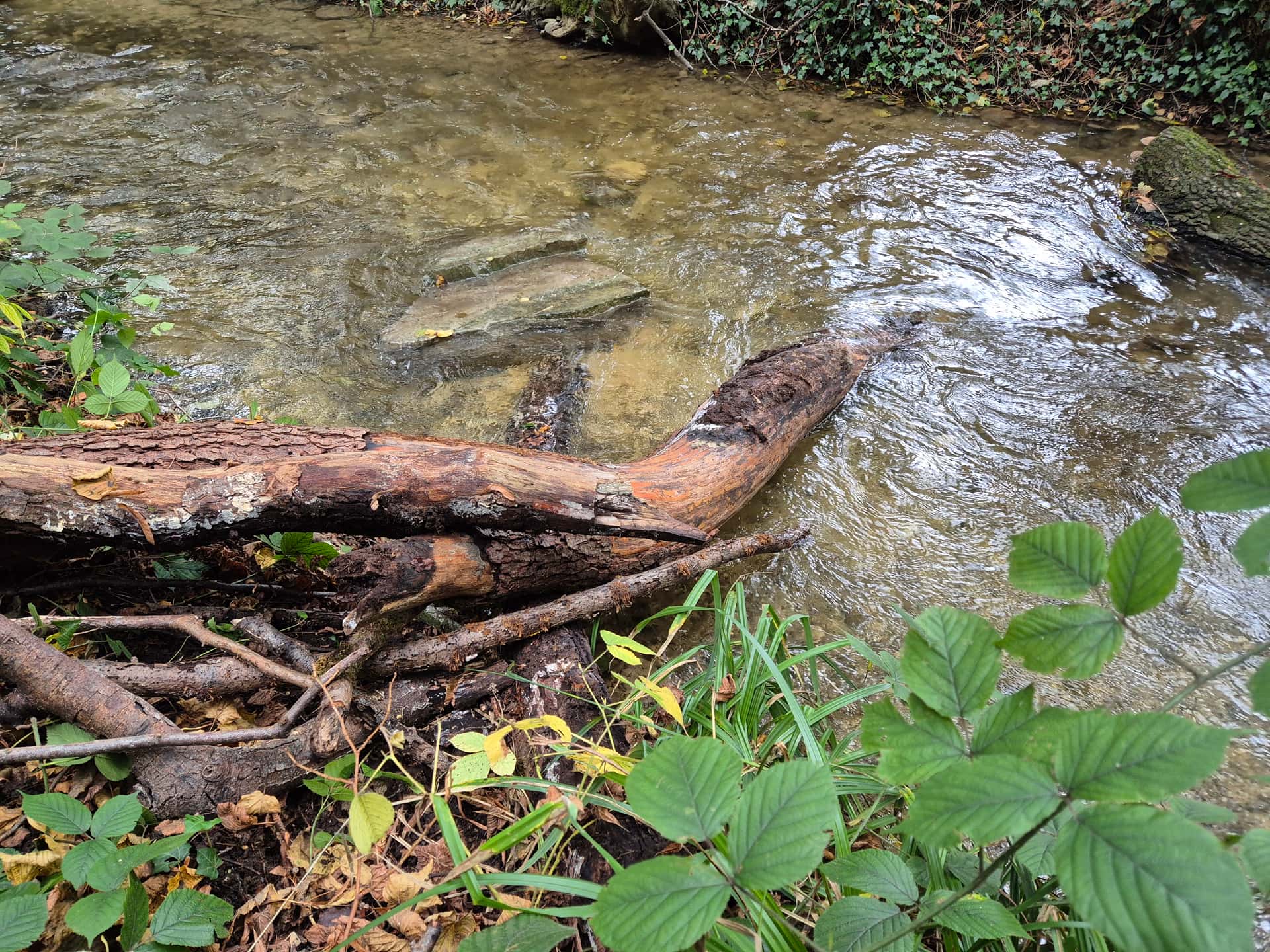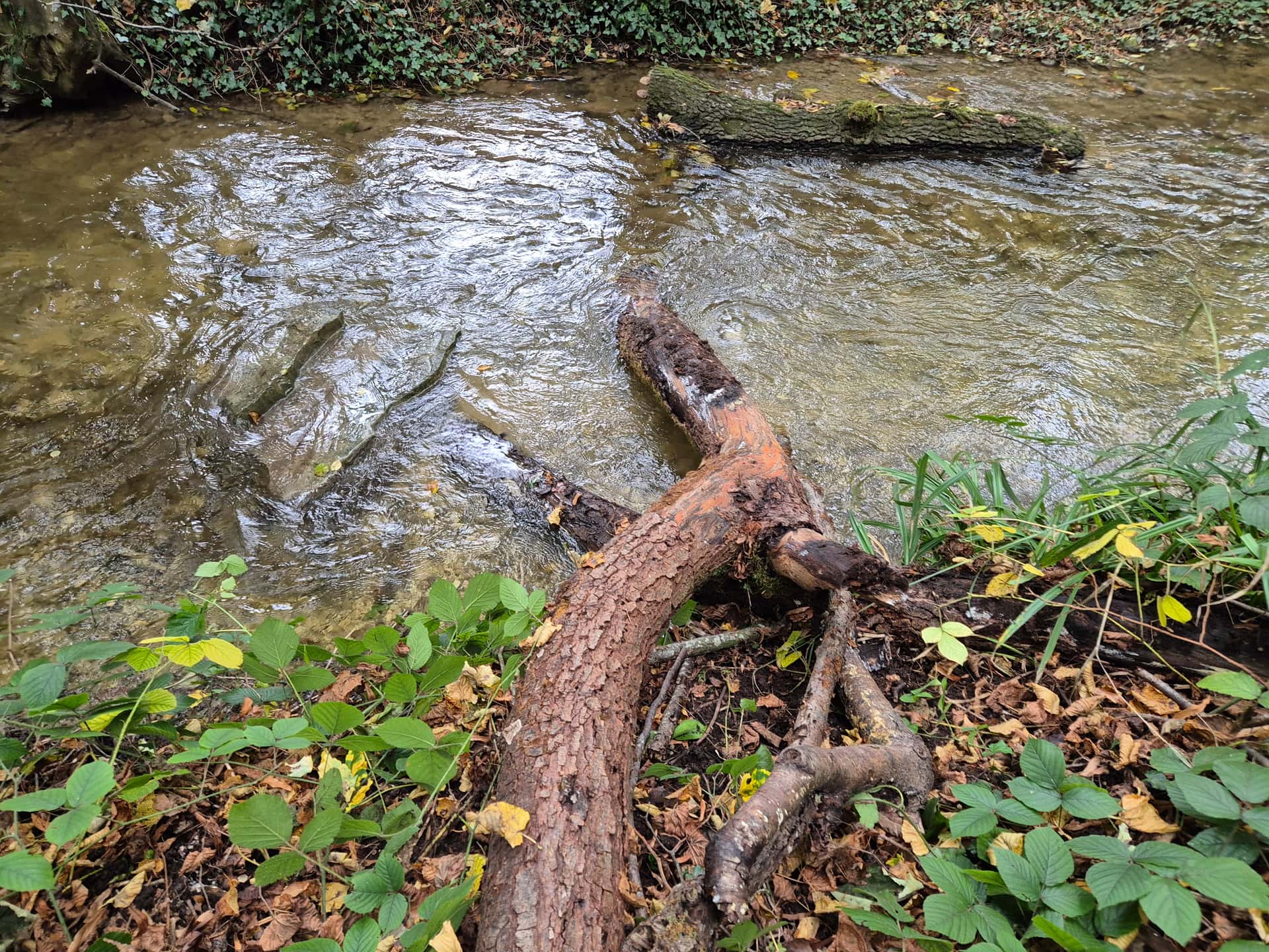 Comme déjà dit, il n’y a ici pas de risque qu’une crue “balaie tout” comme tu l’as écrit. C’est un tributaire au débit très modeste (même en période de crue), et la plupart des enrochements et embâcles présents depuis des années sans bouger ont ce gabarit, voire moins.