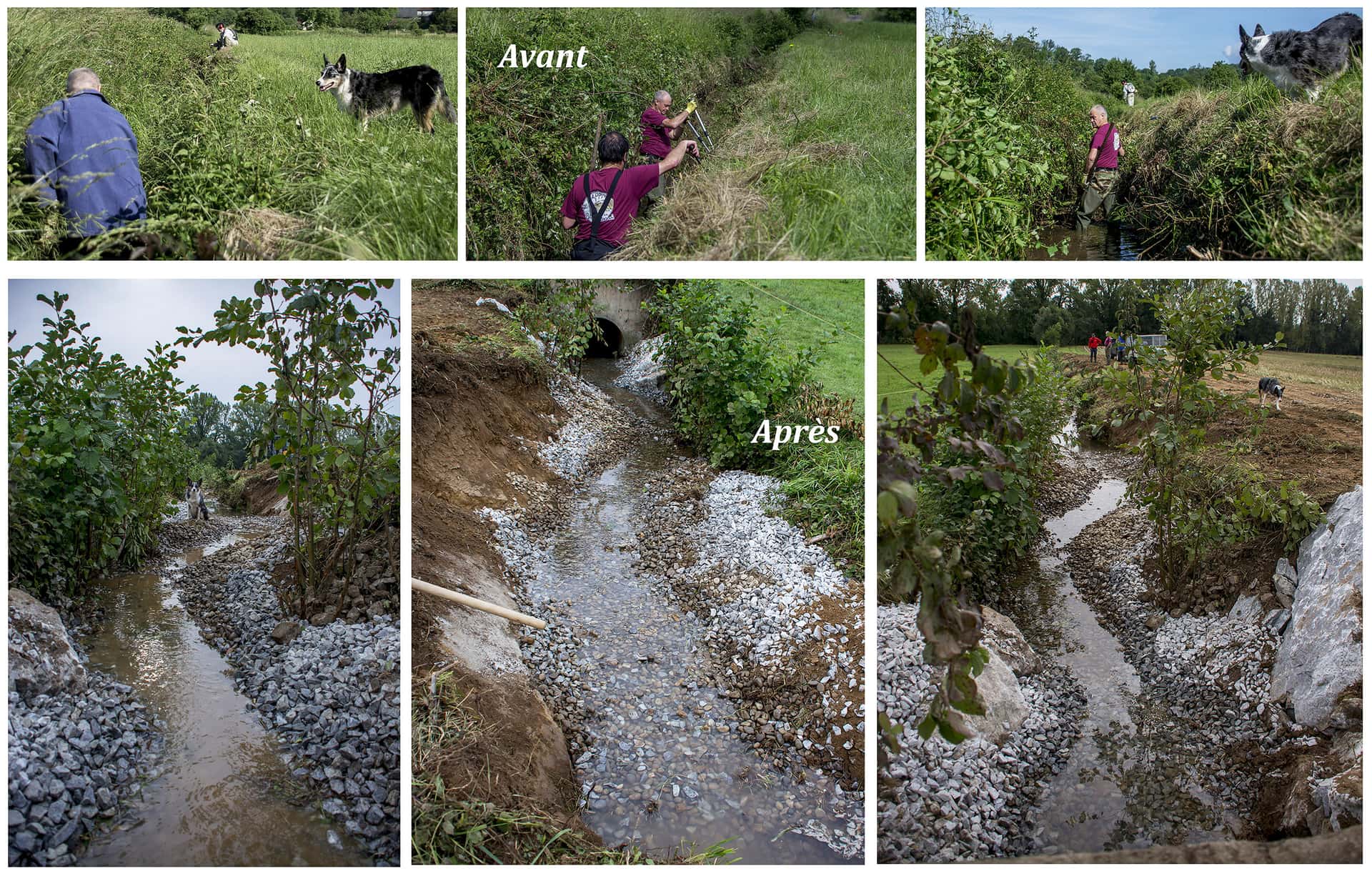 Ici, un petit tronçon d’un modeste cours d’eau dont le fond était trop lisse, trop uniforme, colmaté, sans aucune profondeur (15-20 cm max.) ni caches, ni variété, ni postes d’oxygénation.