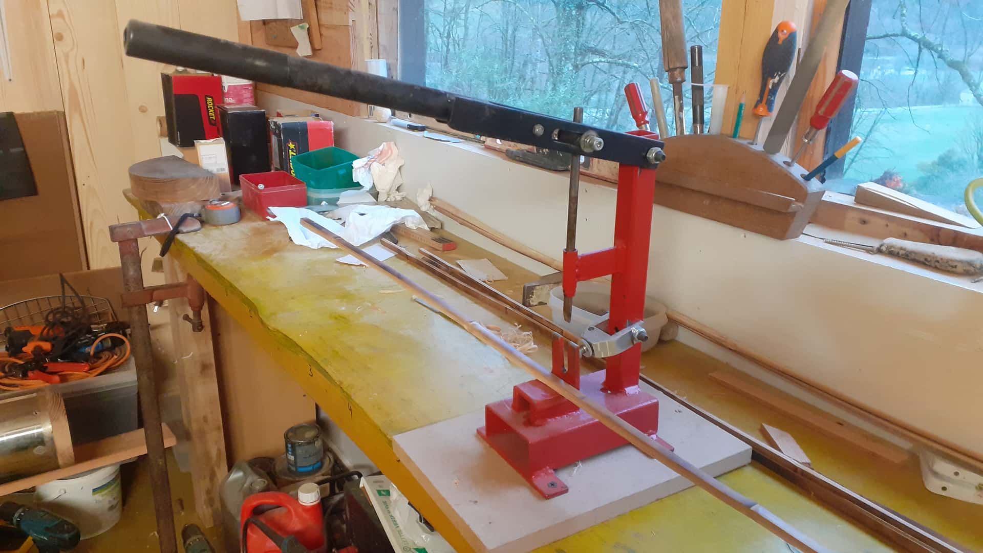 Bonjour. Je mets à la vente cette petite fendeuse à bambou manuelle. Elle est en très bon état. Prix de vente 110 euros. Prévoir frais de port en supplément. Merci