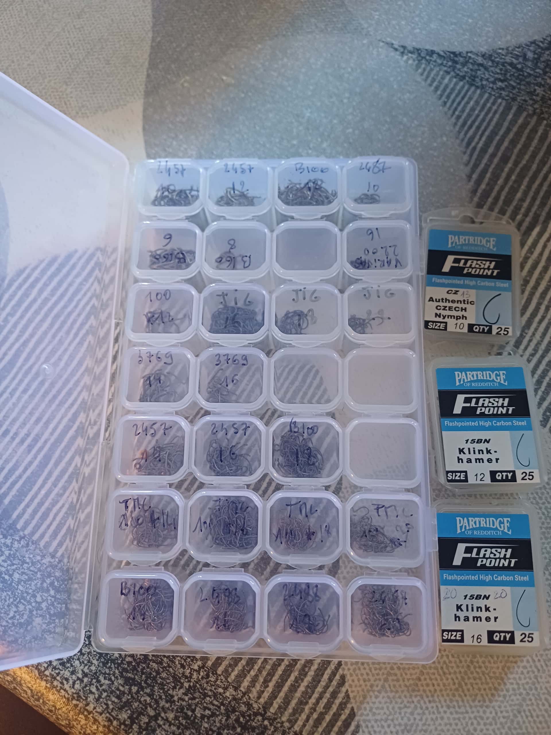 Bonjour je vends le lot d’hameçons avec 3 autres boîtes Patridhe offertes et boîte de rangement offerte.