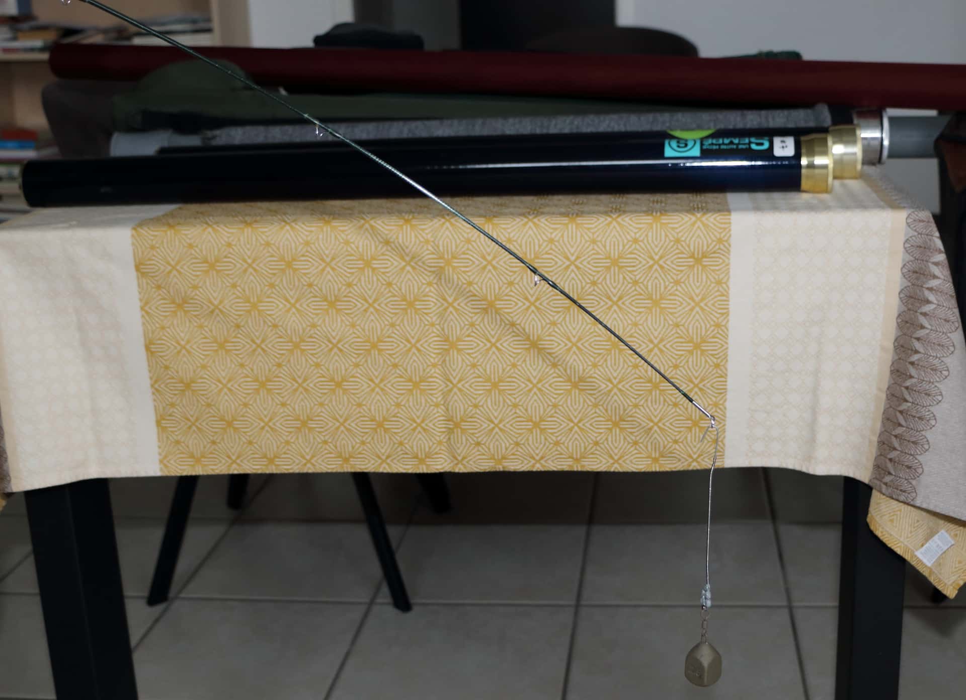 1 10 pieds soie de 5 qui sort pile-poil à 5 avec le scion qui n’a pas été cassé et qui devient une 6 avec le scion un petit peu plus court et ses manchons suite aux casses dues à un pêcheur maladroit
