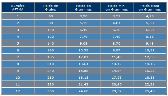Pour rappel ci-dessous les poids des soies selon la norme